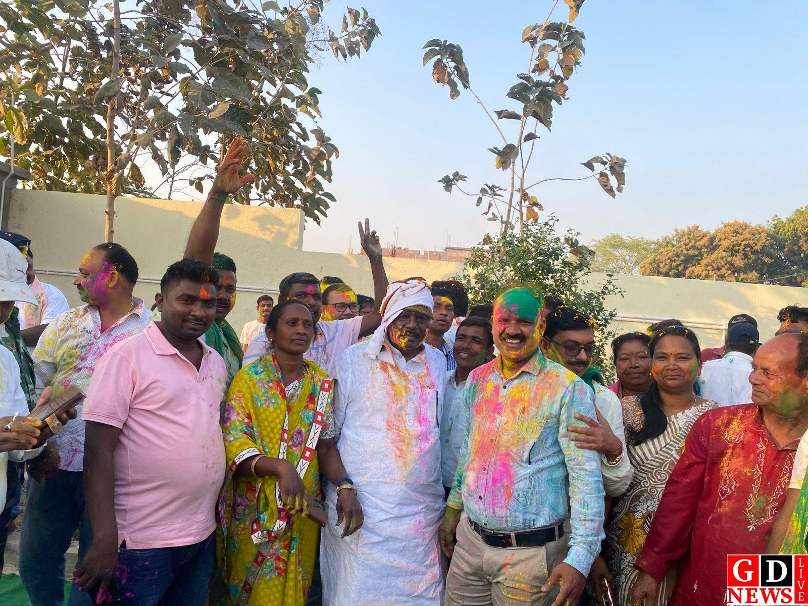 लिट्टीपाड़ा (पाकुड़): प्रखंड क्षेत्र के पतरापाड़ा गांव में सोमवार को प्रखंड उपाध्यक्ष रंजन साह के आवास पर होली मिलन समारोह का भव्य आयोजन किया गया। समारोह में लिट्टीपाड़ा विधायक हेमलाल मुर्मू मुख्य रूप से उपस्थित रहे। कार्यक्रम उत्साह, उमंग और रंगों की खुशियों से सराबोर रहा। समारोह में क्षेत्र के बड़ी संख्या में कार्यकर्ता एवं स्थानीय ग्रामीण शामिल हुए। पारंपरिक होली गीतों की धुन पर विधायक हेमलाल मुर्मू ने कार्यकर्ताओं के साथ जमकर नृत्य किया और सभी को होली की शुभकामनाएं दीं। उन्होंने कहा कि होली का पर्व आपसी प्रेम, भाईचारे और सामाजिक सौहार्द को मजबूत करता है तथा समाज को एकता के सूत्र में बांधने का संदेश देता है। कार्यक्रम के दौरान उपस्थित लोगों ने एक-दूसरे को अबीर-गुलाल लगाकर बधाइयां दीं और पारंपरिक व्यंजनों का आनंद लिया। पूरे आयोजन में उत्सव जैसा माहौल बना रहा, वहीं कार्यकर्ताओं में खासा उत्साह देखने को मिला। आयोजन ने क्षेत्र में सामाजिक समरसता और आपसी सद्भाव का संदेश दिया।