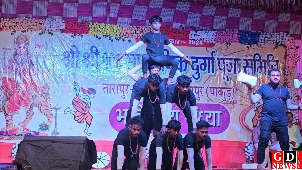 श्री श्री 108 सार्वजनिक दुर्गा पूजा समिति, तारापुर की ओर से आयोजित भव्य अंतरराज्यीय डांस प्रतियोगिता में झारखंड, बिहार, बंगाल, छत्तीसगढ़, उड़ीसा, नेपाल और राजस्थान से आए कलाकारों ने अपनी प्रस्तुतियों से दर्शकों को मंत्रमुग्ध कर दिया। पूरे पंडाल परिसर में तालियों और उत्साह की गूंज से माहौल उत्सवधर्मी हो उठा। कार्यक्रम की सबसे खास बात रही कि मुंबई से आए हिप हॉप सीजन-1 के विजेता राहुल भगत ने बतौर जज शिरकत कर प्रतिभागियों का उत्साह बढ़ाया। भव्य आयोजन का उद्घाटन पुलिस उपाधीक्षक मनोज कुमार, हिरणपुर थाना प्रभारी रंजन कुमार सिंह, भानु प्रताप साहा, चंद्रयान साहा, लखि साहा, करण साहा और पंकज साहा ने संयुक्त रूप से किया। इस अवसर पर पुलिस उपाधीक्षक मनोज कुमार ने समिति की सराहना करते हुए कहा कि तारापुर समिति न केवल धार्मिक आस्था को आगे बढ़ा रही है, बल्कि सांस्कृतिक चेतना को भी नई दिशा दे रही है।