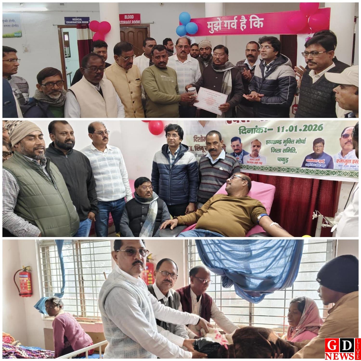 पाकुड़: झारखंड मुक्ति मोर्चा (झामुमो) के संस्थापक और दिसोम गुरु शिबू सोरेन की पहली जयंती रविवार को पाकुड़ स्थित झामुमो जिला कार्यालय में श्रद्धा और उत्साह के साथ मनाई गई। कार्यक्रम की शुरुआत गुरुजी शिबू सोरेन की तस्वीर पर पुष्प अर्पित कर श्रद्धांजलि देने से हुई।इस अवसर पर महेशपुर विधायक प्रो. स्टीफन मरांडी, झामुमो जिला अध्यक्ष एजाजुल इस्लाम, पूर्व जिला अध्यक्ष श्याम यादव सहित पार्टी के कई वरिष्ठ नेता और कार्यकर्ता उपस्थित रहे। नेताओं ने गुरुजी के संघर्ष, आदिवासी-अस्मिता और सामाजिक न्याय के लिए किए गए योगदान को याद करते हुए उनके विचारों को आगे बढ़ाने का संकल्प लिया।इसके बाद झामुमो नेताओं और कार्यकर्ताओं ने सदर अस्पताल, पाकुड़ पहुंचकर मरीजों के बीच फल और कंबल का वितरण किया। इस मानवीय पहल से अस्पताल में भर्ती मरीजों और उनके परिजनों के चेहरों पर राहत और खुशी देखी गई।कार्यक्रम के अंतिम चरण में झामुमो कार्यकर्ता ब्लड बैंक पहुंचे, जहां कार्यकर्ताओं ने स्वेच्छा से रक्तदान किया।इस मौके पर महेशपुर विधायक प्रो. स्टीफन मरांडी ने कहा कि दिसोम गुरु शिबू सोरेन सिर्फ एक नेता नहीं, बल्कि आदिवासी समाज की आवाज और पहचान थे। उन्होंने जल, जंगल और जमीन की रक्षा के लिए जो संघर्ष किया, वह आने वाली पीढ़ियों के लिए प्रेरणा है। झामुमो कार्यकर्ताओं का कर्तव्य है कि गुरुजी के विचारों को जन-जन तक पहुंचाएं और समाज के अंतिम व्यक्ति तक न्याय व अधिकार दिलाने के लिए लगातार संघर्ष करें। वहीं झामुमो जिला अध्यक्ष एजाजुल इस्लाम ने कहा कि दिसोम गुरु शिबू सोरेन का जीवन संघर्ष, समर्पण और जनसेवा की मिसाल है, और पार्टी कार्यकर्ता उनके बताए मार्ग पर चलते हुए समाज के अंतिम व्यक्ति तक मदद पहुंचाने के लिए प्रतिबद्ध हैं।