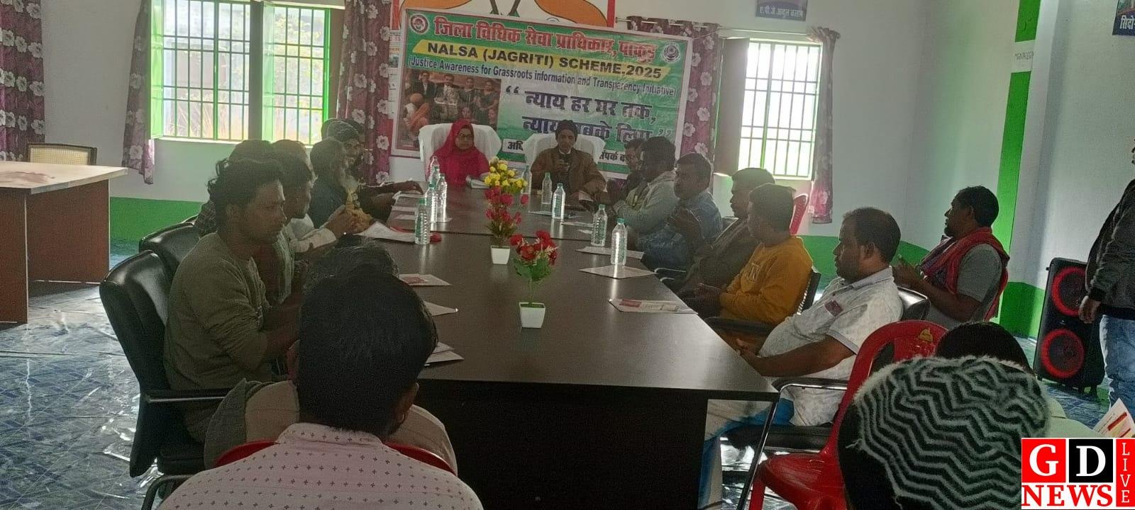 पाकुड़। झारखंड राज्य विधिक सेवा प्राधिकार (झालसा), रांची के निर्देश पर जिला विधिक सेवा प्राधिकार, पाकुड़ के तत्वावधान में भवानीपुर पंचायत भवन में नालसा की जागृति योजना को लेकर विधिक जागरूकता शिविर का आयोजन किया गया। यह शिविर प्रधान जिला एवं सत्र न्यायाधीश सह अध्यक्ष जिला विधिक सेवा प्राधिकार पाकुड़ दिवाकर पांडे के निर्देश तथा सचिव रूपा बंदना किरो के मार्गदर्शन में आयोजित हुआ।