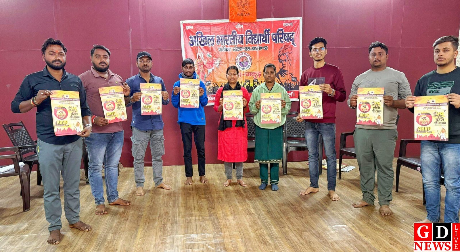 अखिल भारतीय विद्यार्थी परिषद झारखंड प्रदेश के 24 वे प्रदेश अधिवेशन का आज विद्यार्थी परिषद के पाकुड़ जिला कार्यालय में पोस्टर विमोचन किया गया। विभाग संयोजक अमित शाह ने बताया कि प्रत्येक वर्ष के भांति इस बार भी विद्यार्थी परिषद के प्रदेश अधिवेशन का आयोजन 3 जनवरी से 5 जनवरी तक धनबाद जिले में हो रहा है जिसमें पूरे झारखंड प्रदेश भर से हजारों की संख्या में विद्यार्थी परिषद के कार्यकर्ताएं भाग लेंगे एवं संगठन के विभिन्न गतिविधियों के बारे में जानेंगे। इसी क्रम में पाकुड़ जिले से 40 की संख्या में छात्र-छात्राएं इस अधिवेशन में भाग लेने के लिए धनबाद जा रहे हैं। नगर मंत्री हर्ष भगत ने बताया कि हम सभी संगठन के विभिन्न गतिविधियों को देखने एवं सीखने के लिए अधिवेशन में भाग लेने जा रहे हैं एवं अधिवेशन से लौटकर अपने पाकुड़ में संगठन के गतिविधियों को तेज करने का प्रयास करेंगे। मौके पर मनीषा कुमारी,रानी साहा,आदित्य हेंब्रम,सत्यम भगत,विशाल भगत,सानू राज,कमल किशोर सहित अन्य कार्यकर्ता उपस्थित रहे।