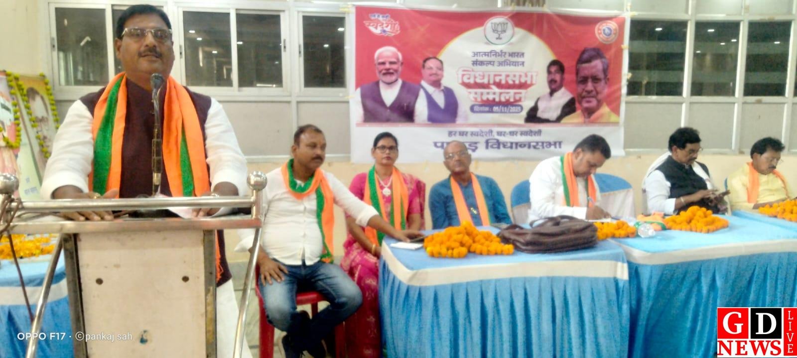 पाकुड़। भारतीय जनता पार्टी की ओर से बुधवार को अपर्णा मार्केट कॉम्प्लेक्स में आत्मनिर्भर भारत संकल्प अभियान के तहत पाकुड़ विधानसभा सम्मेलन का आयोजन किया गया। कार्यक्रम की अध्यक्षता जिलाध्यक्ष अमृत पांडेय ने की, जबकि मुख्य वक्ता के रूप में प्रदेश मंत्री दिलीप वर्मा और दुर्गा मरांडी ने संबोधित किया। कार्यक्रम को संबोधित करते हुए प्रदेश मंत्री दिलीप वर्मा ने कहा कि प्रधानमंत्री नरेंद्र मोदी ने आत्मनिर्भर भारत का जो सपना देखा है, वह अब साकार होता दिख रहा है। देश के किसान, युवा, उद्यमी और छोटे व्यवसायी तेजी से आत्मनिर्भरता की दिशा में आगे बढ़ रहे हैं। उन्होंने कहा कि “वोकल फॉर लोकल” अभियान ने देशी उत्पादों को नई पहचान दी है और भारतीय पर्यटन, उद्योग और ग्राम विकास को नई ऊर्जा मिली है।