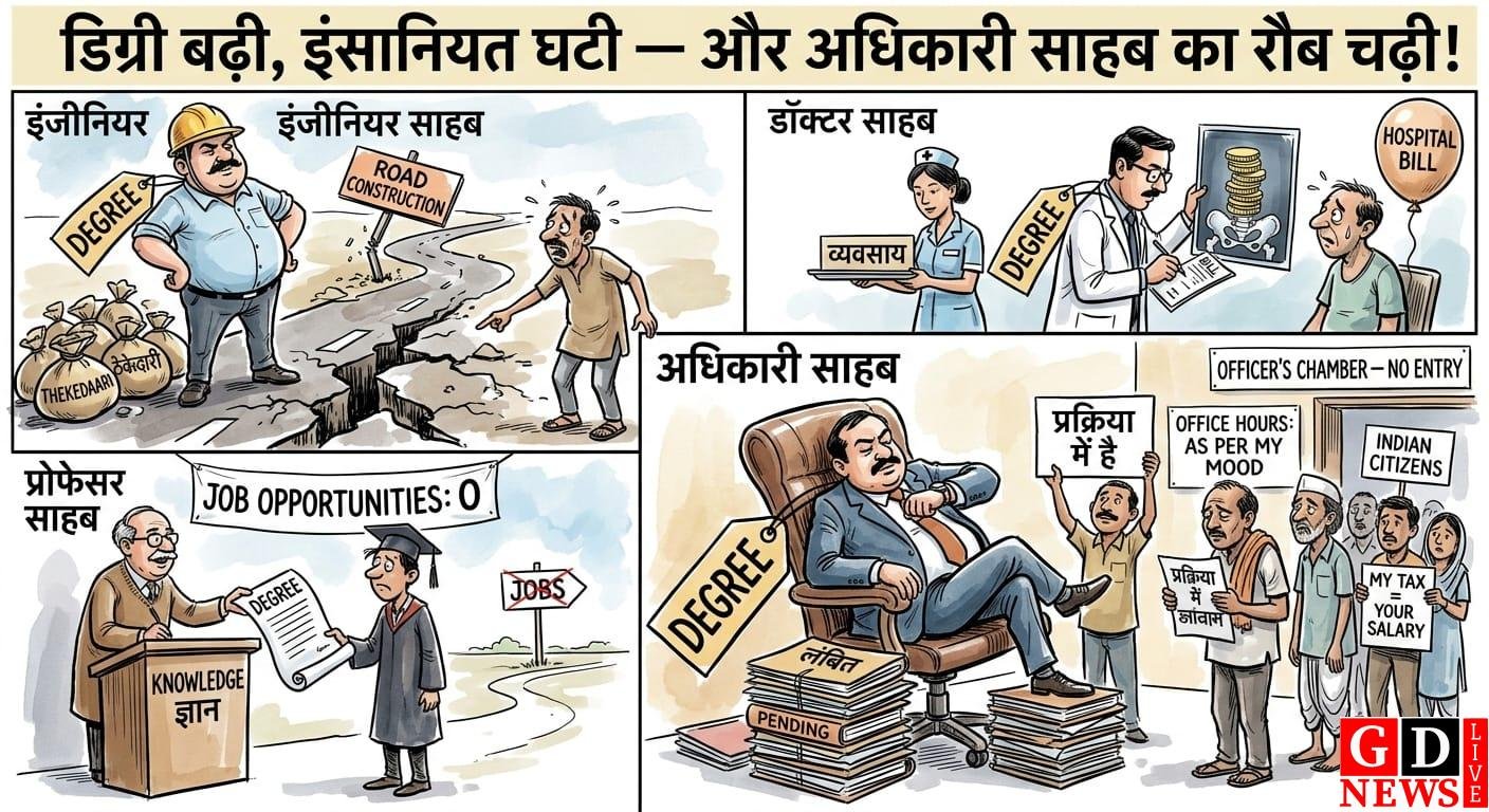 विश्लेषण डेस्क आज के आधुनिक दौर में हम चांद पर पहुँचने की तैयारी तो कर रहे हैं, लेकिन ज़मीन पर इंसानियत का ग्राफ लगातार गिरता जा रहा है। हाल ही में समाज के विभिन्न वर्गों के व्यवहार पर एक गहरी चिंता व्यक्त की गई है, जो यह बताती है कि हमारे नाम के आगे लगे “डॉक्टर”, “इंजीनियर” और “अधिकारी” जैसे भारी-भरकम टैग अब केवल डिग्रियाँ बनकर रह गए हैं, सेवा का भाव इनमें से कहीं खो चुका है।
