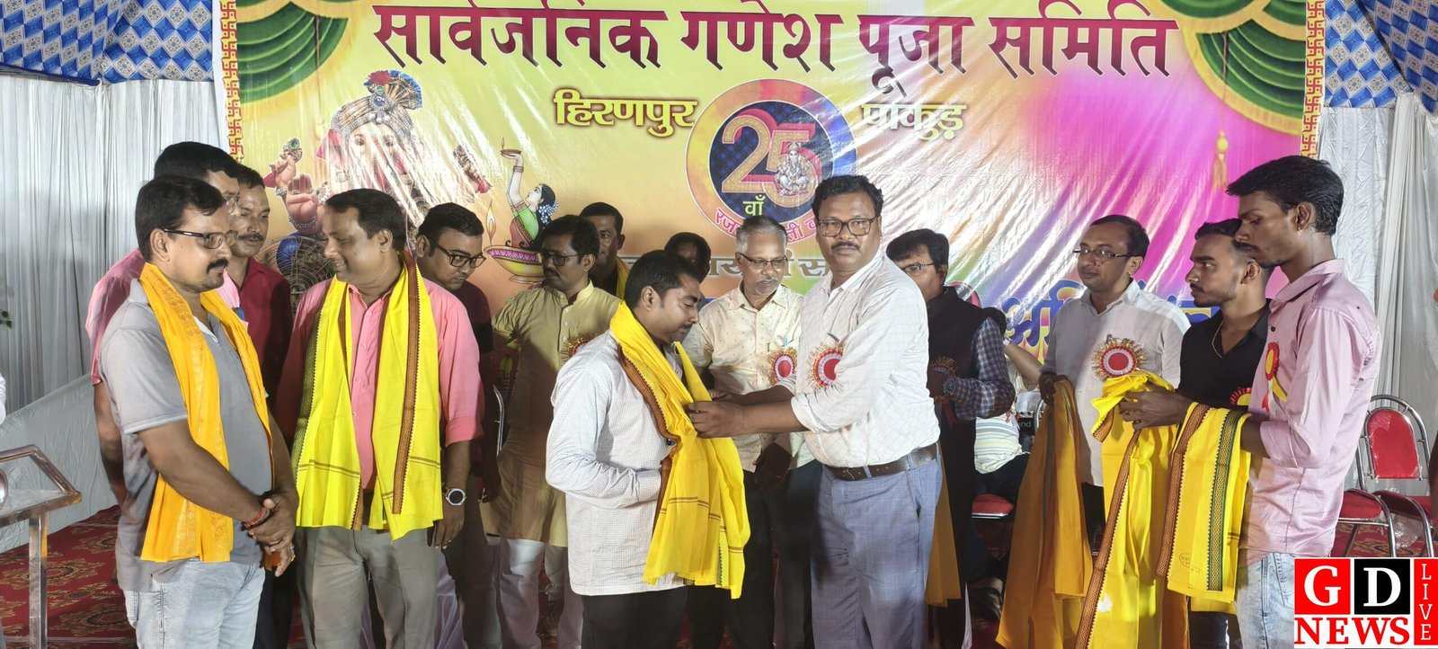 हिरणपुर (पाकुड़):गणेशोत्सव के अवसर पर सार्वजनिक गणेश पूजा समिति हिरणपुर में शनिवार देरशाम भक्ति जागरण कार्यक्रम आयोजित की गई। कार्यक्रम का शुभारंभ जिप उपाध्यक्ष अशोक भगत, बीडीओ टुडू दिलीप अंचलाधिकारी मनोज कुमार, नारायण भगत, रंजीत भगत,दीपक साहा, अमित रक्षित,समिति के अध्यक्ष अजय यादव ने संयुक्त रूप से दीप प्रज्वलित कर किया ।वही मंच संचालन चंदन दत्ता और मिलन रूज ने किया। जिसमें विशेष रूप से 2001 में स्थापित बाबा गणपति के संस्थापक सदस्य जिसकी कुल 15 सदस्य कार्यक्रम में उपस्थित हो पाए जिसमें से भास्कर वर्धन, जयप्रकाश शाह, पंकज रक्षित, विपिन दत्त, कमलदेव आजाद, अचिंत चांद को अंग वस्त्र देकर सम्मानित भी किया गया ।वही बच्चों का डांस , क्विज प्रतियोगिता में विजेता बच्चों को पुरस्कृत भी किया गया ।रात भर चले इस कार्यक्रम में काफी संख्या में लोग उपस्थित थे। जहां देवघर, कलकत्ता व जमुई से आये सुर संगम म्यूजिकल ग्रुप के बैनर तले कलाकारों ने गीत संगीत से रातभर समां बांधे रखा। कलाकारों का नेतृत्व शुभम भास्कर ने किया ।गायिका स्नेहा सरगम ने ना हमसे भंगिया पिसाई गणेश के पापा,, शुभम मिश्रा ने तेरे दर पे आया ओ बाबा , पूनम यादव, बबलू पंडित ने भी अपने अपने गीतों पर दर्शकों को झुमाया।वही बंगाल से आए मनमोहक झांकी भी कलाकारों द्वारा प्रस्तुति की गई। बीडीओ ने कहा कि समिति द्वारा एक अच्छा संदेश समाज को पोस्टर बैनर के जरिए बेटी बचाओ बेटी पढ़ाओ को दिया गया जो काफी सराहनीय है।इस अवसर पर कमिटी के कोषाध्यक्ष अर्प शील, सुमित भगत,दीपक भगत, विश्वजीत सेन, ,आदि मुख्य रूप से उपस्थित थे।