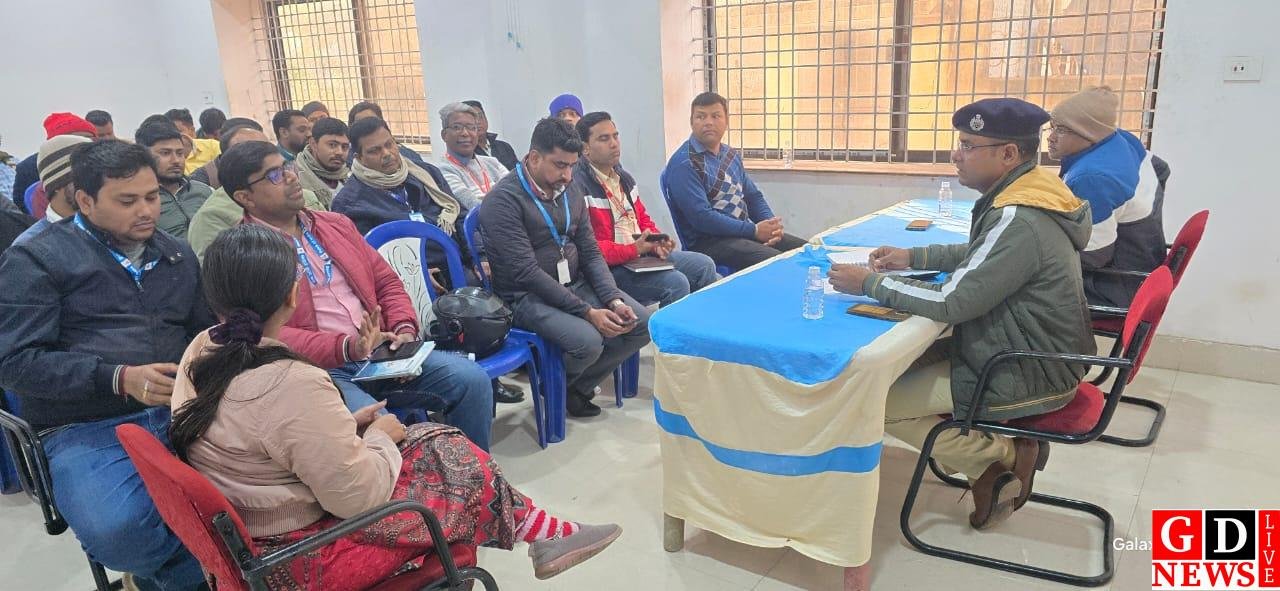 पाकुड़: पाकुड़ शहर में लगातार बढ़ रही चोरी की घटनाओं को लेकर नगर थाना परिसर में एक महत्वपूर्ण सुरक्षा बैठक आयोजित की गई। बैठक में बैंक एवं सीएसपी पदाधिकारी व कर्मी, ज्वेलरी दुकानदार तथा पेट्रोल पंप मालिक शामिल हुए।बैठक के दौरान सभी व्यवसायिक प्रतिष्ठानों को सुरक्षा मानकों का सख्ती से पालन करने का निर्देश दिया गया। पुलिस ने स्पष्ट किया कि जिन स्थानों पर सीसीटीवी कैमरा और सायरन नहीं लगे हैं, वहां अविलंब इसे स्थापित कराया जाए। वहीं, जहां सुरक्षा गार्ड की व्यवस्था नहीं है, वहां गार्ड रखने का अनुरोध किया गया।इसके अलावा अधिक मात्रा में नकदी के आवागमन की स्थिति में पूर्व सूचना नगर थाना को देने का निर्देश दिया गया, ताकि किसी भी अप्रिय घटना से समय रहते निपटा जा सके। पुलिस की ओर से अन्य आवश्यकदिशा-निर्देश भी साझा किए गए।बैठक की अध्यक्षता करते हुए इंस्पेक्टर सह नगर थाना प्रभारी बबलू कुमार ने कहा कि शहर की सुरक्षा व्यवस्था मजबूत करना पुलिस और नागरिकों की संयुक्त जिम्मेदारी है। उन्होंने सभी से सहयोग की अपील करते हुए सतर्क रहने का संदेश दिया।