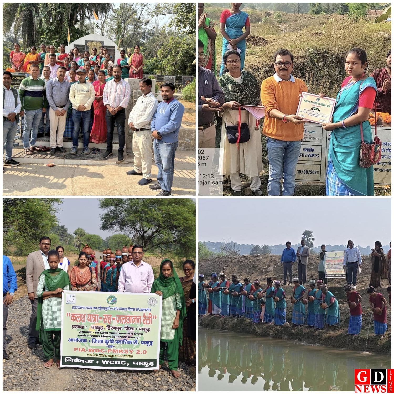 पाकुड़। झारखंड स्थापना दिवस के रजत जयंती वर्ष पर पाकुड़ जिले में जल एवं मृदा संरक्षण को लेकर विशेष कार्यक्रमों का आयोजन किया गया। झारखंड राज्य जलछाजन मिशन योजना के तहत पाकुड़, हिरणपुर और लिट्टीपाड़ा प्रखंडों में जलछाजन रैली, कलश यात्रा, गौरव गाथा प्रस्तुति, जलछाजन गीत, रंगोली प्रतियोगिता और पौधारोपण जैसे आयोजन हुए। कार्यक्रमों का उद्देश्य आम लोगों में जल व मृदा संरक्षण के प्रति जागरूकता बढ़ाना रहा। रैली के दौरान “पानी है तो कल है” जैसे नारों से वातावरण गूंज उठा। प्रत्येक जलाशय पर पौधारोपण कर लोगों को पर्यावरण संरक्षण का संदेश दिया गया। इस अवसर पर उप विकास आयुक्त, भूमि संरक्षण पदाधिकारी, जिला कृषि पदाधिकारी, तीनों प्रखंडों के प्रखंड विकास पदाधिकारी, PIAs, जिला तकनीकी विशेषज्ञ, WDT सदस्य, जलछाजन समिति सदस्य और जनप्रतिनिधि उपस्थित रहे। वक्ताओं ने कहा कि जल और मिट्टी का संरक्षण ही सतत विकास की असली नींव है, जिसके लिए जनभागीदारी जरूरी है। झारखंड की 25 वर्ष की विकास यात्रा में ऐसे कार्यक्रम आने वाली पीढ़ी के लिए संसाधनों को सुरक्षित रखने की दिशा में सार्थक कदम हैं।