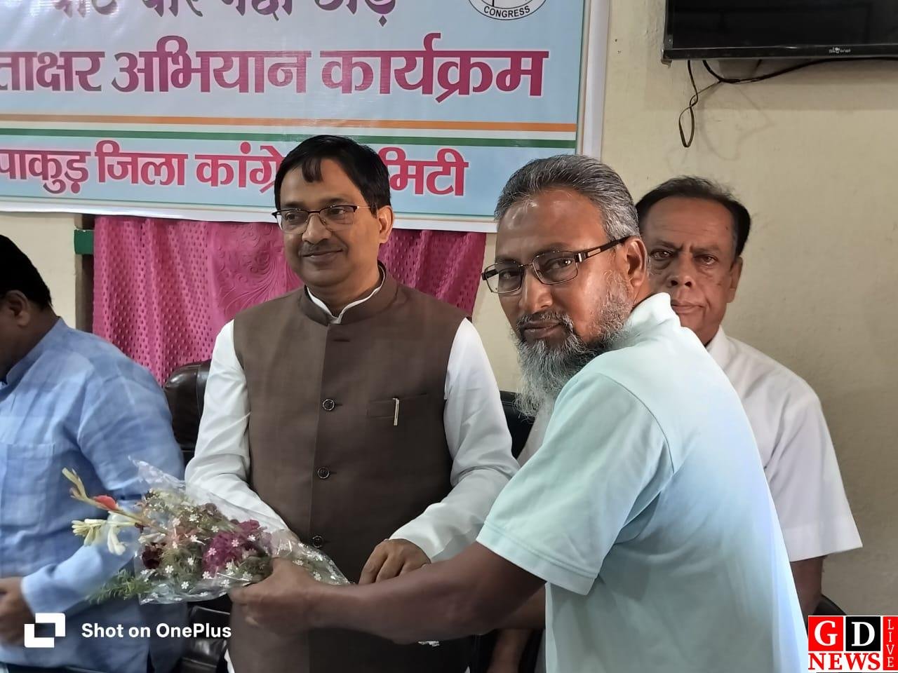 पाकुड़ | “वोट चोर, गद्दी छोड़” — इसी नारे के साथ बुधवार को कांग्रेस ने भाजपा सरकार के खिलाफ बड़ा जनअभियान छेड़ दिया। अखिल भारतीय कांग्रेस कमेटी के सचिव एवं प्रदेश सह प्रभारी डॉ. सीरिवेला प्रसाद, झारखंड प्रदेश कांग्रेस कमेटी के कार्यकारी अध्यक्ष शहजादा अनवर और पाकुड़ विधायक निसात आलम के नेतृत्व में इस हस्ताक्षर अभियान की शुरुआत पाकुड़ सदर प्रखंड और हिरणपुर प्रखंड के मोहनपुर से की गई। इस मौके पर प्रदेश सचिव सेमिनुल इस्लाम, जिला अध्यक्ष कुमार सरकार, प्रखंड पर्यवेक्षक अशोक कुमार दास, जिला कोषाध्यक्ष असद हुसैन, देबू विश्वास, जिला परिषद सदस्य मंजुला हसदा, रामविलास महतो सहित बड़ी संख्या में कांग्रेस कार्यकर्ता मौजूद रहे।