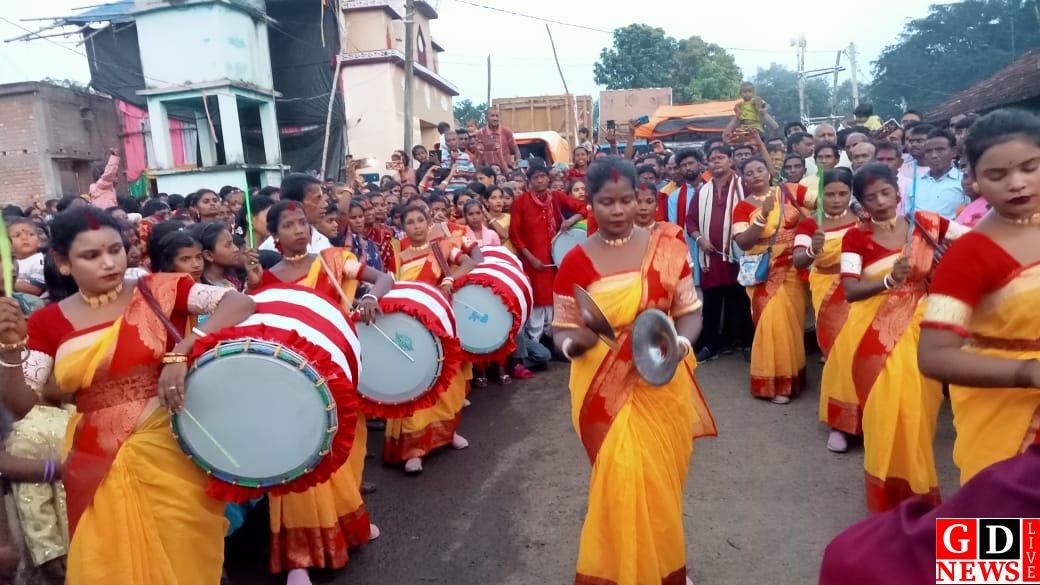 प्रतिमा विसर्जन के दौरान महिला ढाकी दल की धूम।